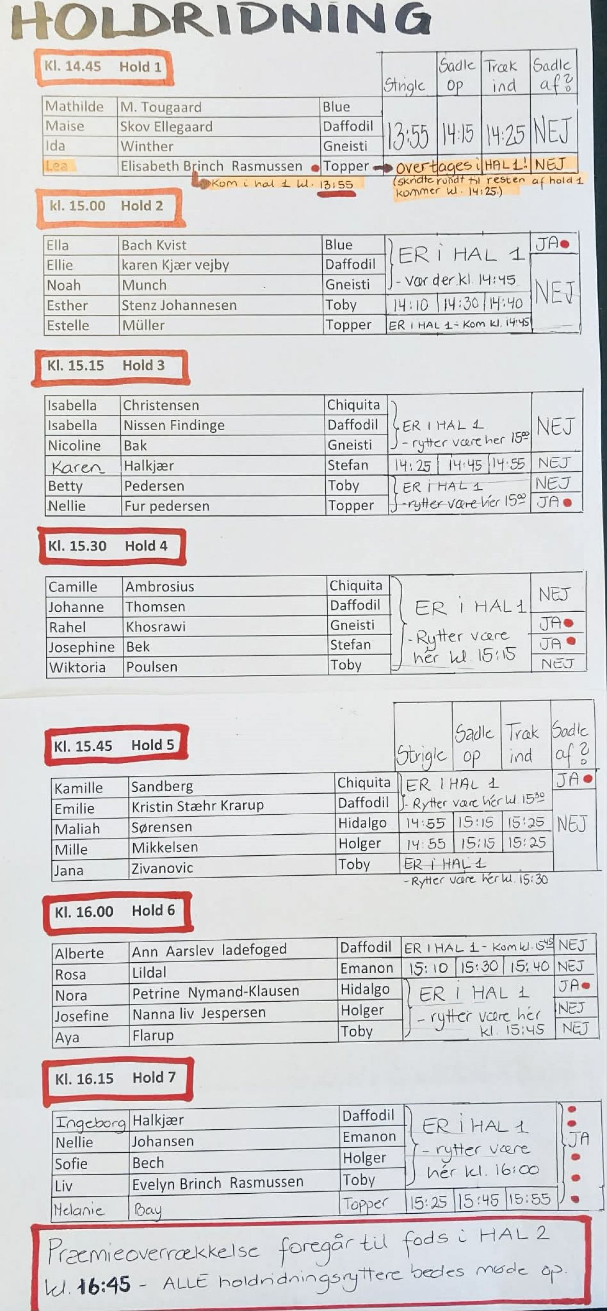 Præmieoverrækkelse i holdridning foregår i hal 2 kl. 16.45. Alle holdridningsryttere bedes møde op. Efter præmieoverrækkelsen (ca. kl. 17.00) er vi klar til at danse om juletræ i hal 1 - og så håber vi på at julemanden kigger forbi 🎅